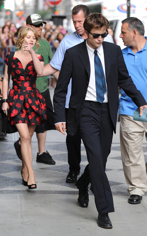 Emlie De Ravin and Robert Pattinson hang out together through the movie set and leave together as well.