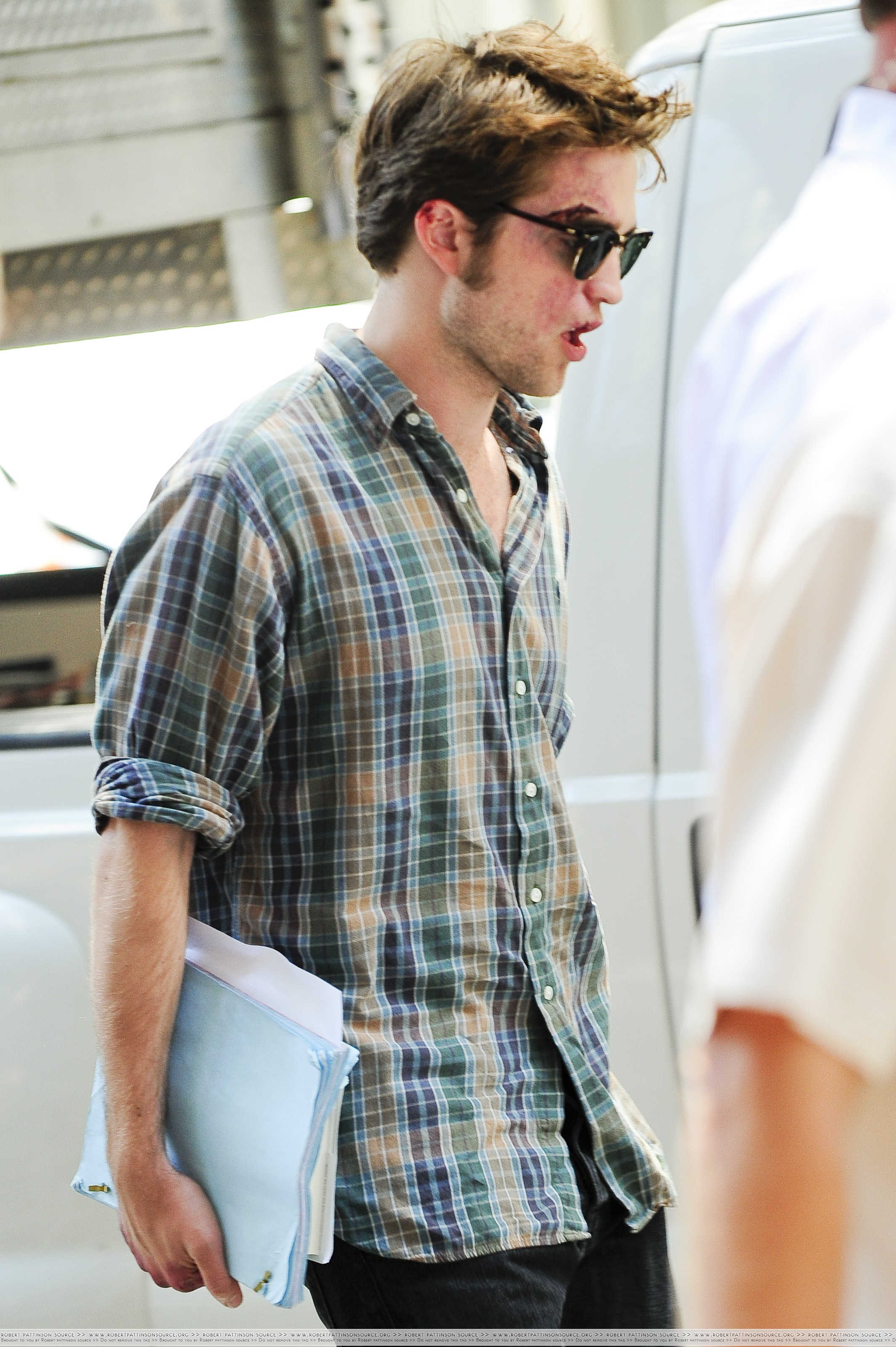 A very bruised up Robert Pattinson on the set of Remember Me today 16/07/2009 » 57912408   Leave a comment