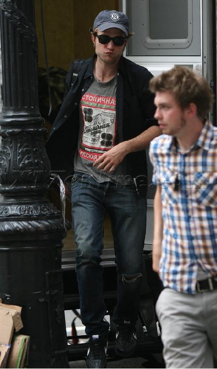 Pics of Robert Pattinson on the set of Remember Me Friday 17/07/2009 with his Stoli shirt » 9   Leave a comment