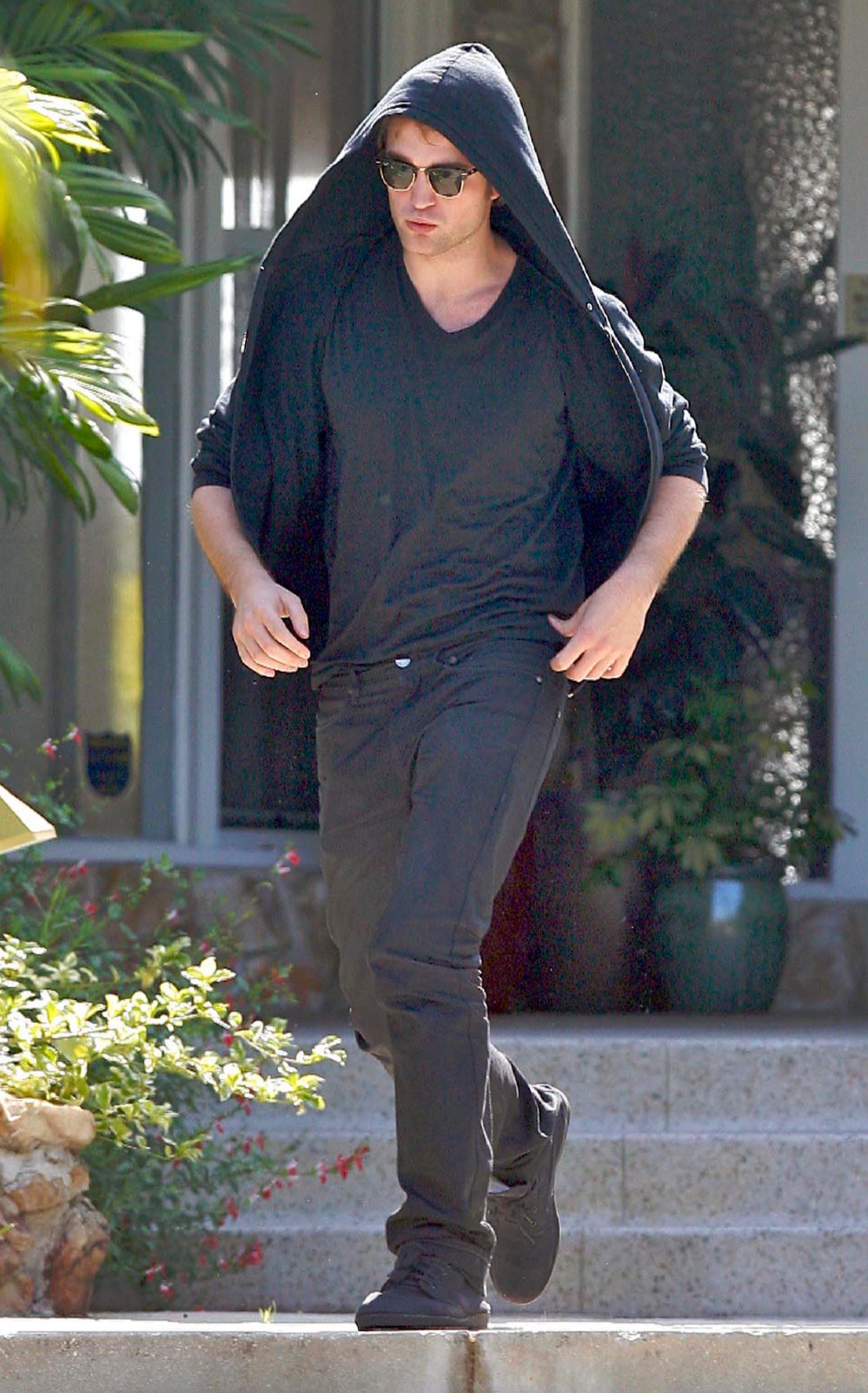 ‘Twilight’ star Robert Pattinson seen leaving his house and heading to Los Angeles International Airport to catch a flight….