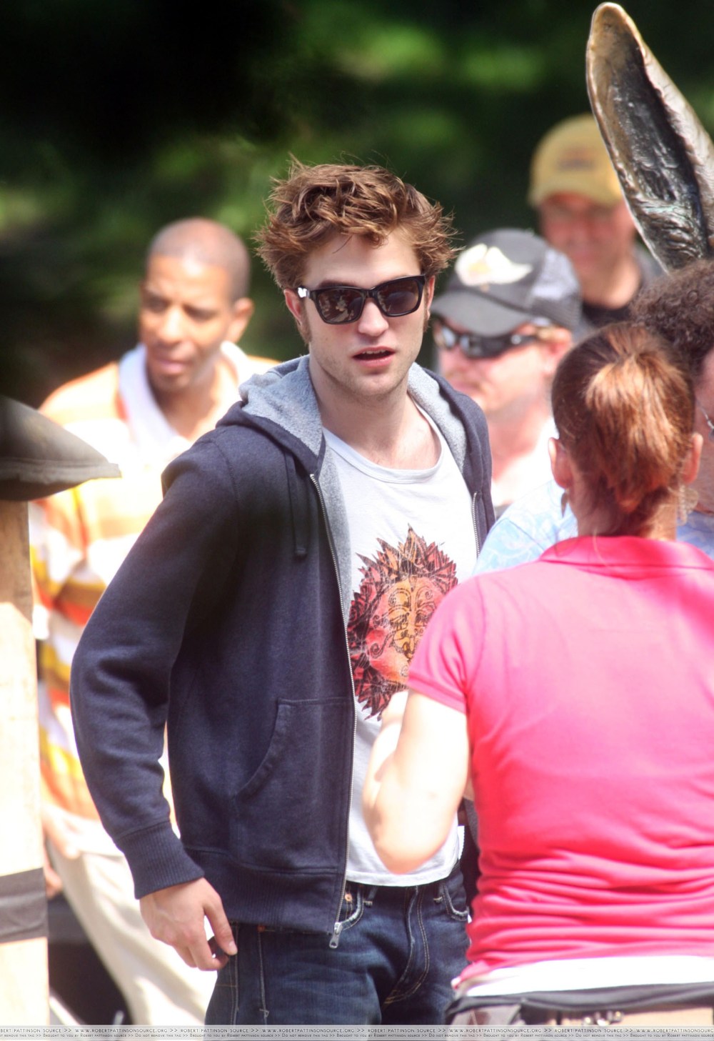 Actors Robert Pattinson and Emilie de Ravin continue filming “Remember Me” in Central Park. Pattinson smokes a cigarette while sharing a scene with Ruby Jerins, who plays his younger sister. In between takes Pattinson and de Ravin cool off with a can of Coke.