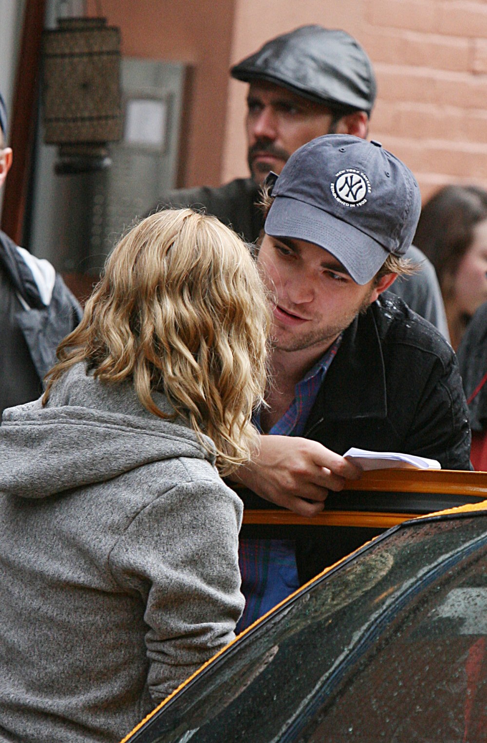 ************….June 24 2009, New York City….Actors Robert Pattinson and Emilie de Ravin on theSoho set of the new movie Remember me on Junein New York City…. Photo via Newscom