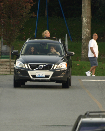 Robert Pattinson and Kristen Stewart filming on the set of the Forks police station in Vancouver_ Canada.