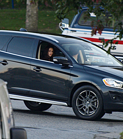 Robert Pattinson and Kristen Stewart filming on the set of the Forks police station in Vancouver_ Canada.