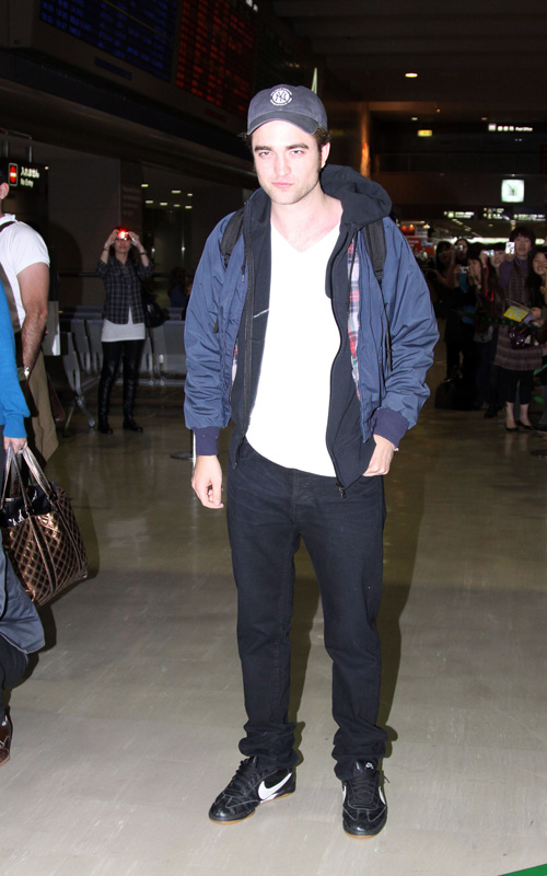 The Twilight hunk touched down at Narita International Airport in Chiba, Japan to begin his worldwide whirlwind tour to promote New Moon. Fresh off the 15-hour flight the British actor was met by hundreds of Twilight fans who had waited hours to catch a glimpse of the star. Pattinson will appear at a fan meeting in Tokyo.
