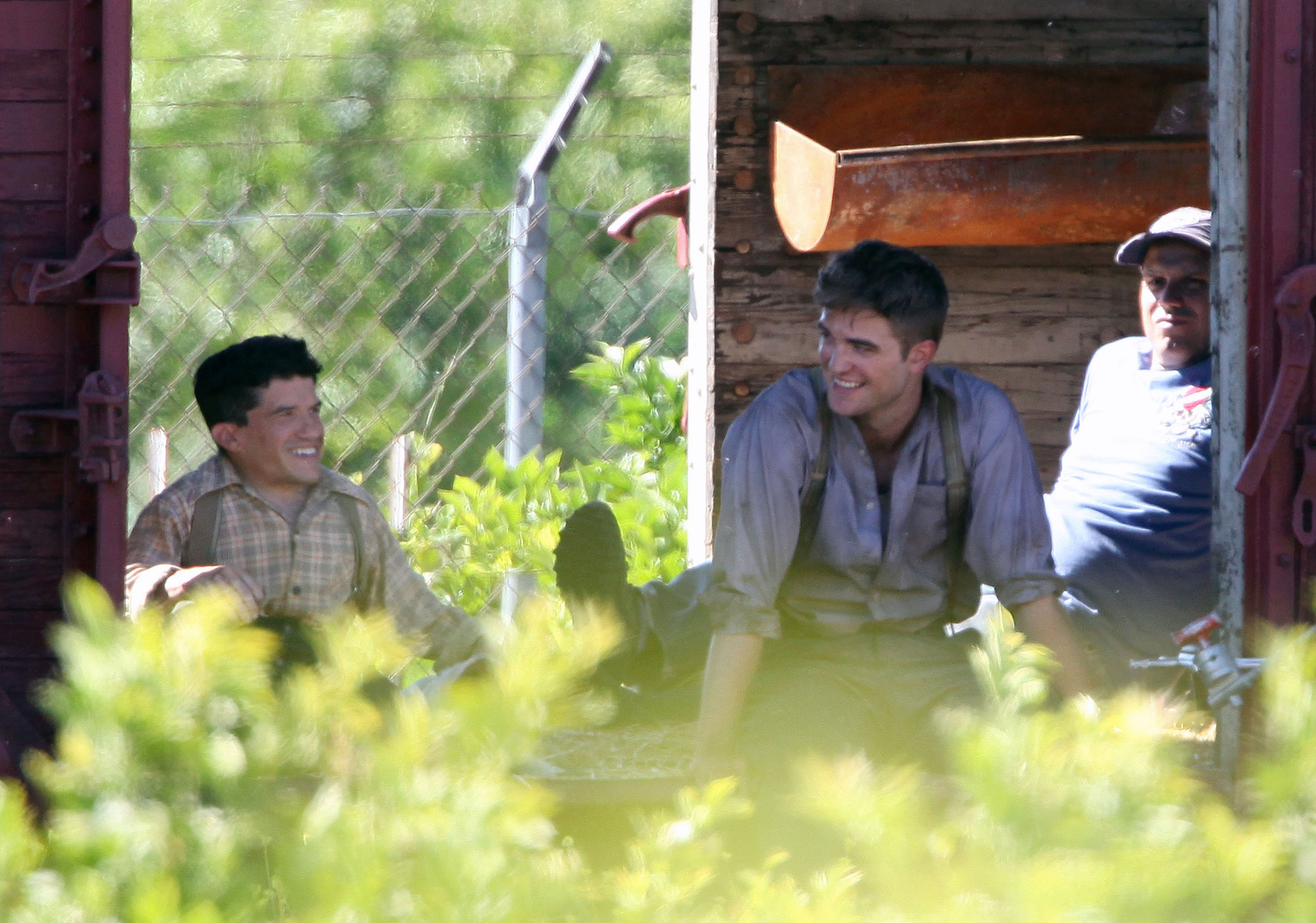 Robert Pattinson takes a ride on a steam train on the set of his latest movie “Water for Elephants” which also stars Reese Witherspoon