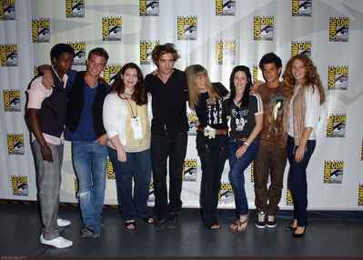 SAN DIEGO – JULY 24: Actor Edi Gathegi, actor Cam Gigandet, writer Stephenie Meyer, actor Robert Pattinson, director Catherine Hardwicke, actress Kristen Stewart, actor Taylor Lautner and actress Rachelle Lefevre attend the 2008 Comic-Con International on July 24, 2008 at the San Diego Convention Center in San Diego, California. (Photo by Albert Ortega/WireImage)