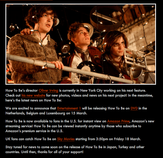 We are excited to announce that Entertainment 1 will be releasing How To Be on DVD in the Netherlands, Belgium and Luxembourg on 15 March.How To Be is now available to fans in the U.S. for instant view on Amazon Prime, Amazon’s new streaming service! How To Be can be viewed instantly anytime by those who subscribe to Amazon’s premium service in the U.S.UK fans can catch How To Be on Sky Movies starting from 3:50pm on Friday 18 March.Stay tuned for news to come soon on the release of How To Be in Japan, Turkey and other countries. Until then, thanks for all of your support!