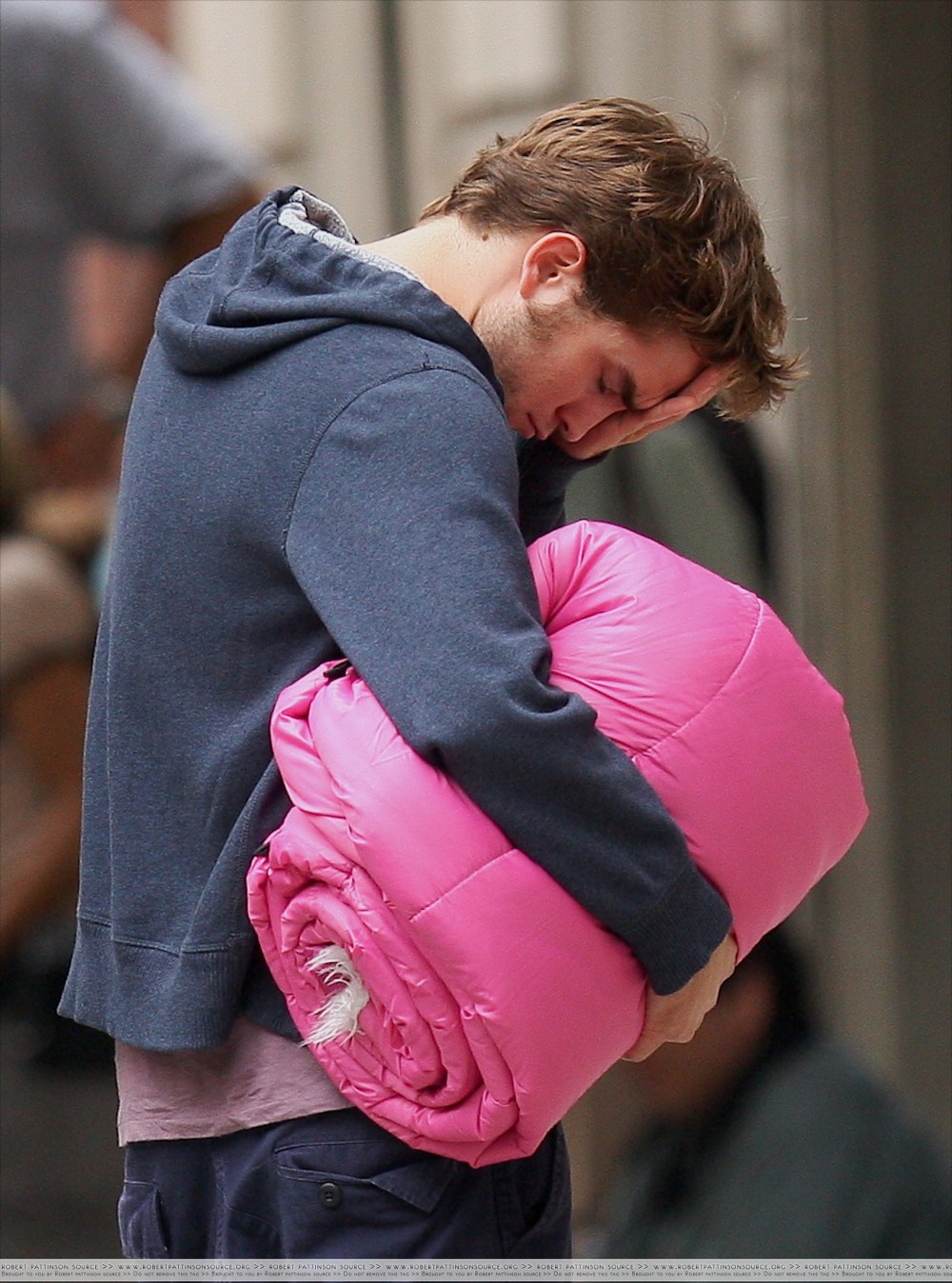Robert Pattinson seen on the set of ” Remember Me ” filming in New York city, USA.