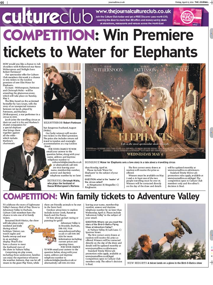 Monday, April 18, 2011. Please include ‘Water for Elephants’ in the subject of your email.
