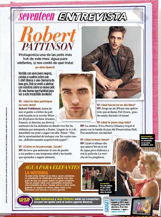 Here’s a interview with Robert Pattinson where he talks about Twilight, Water for Elephants and his future plans