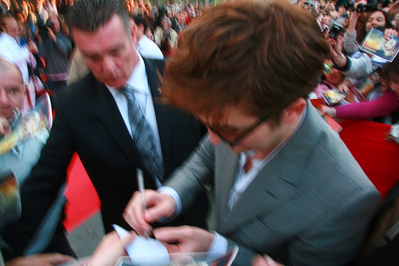 Here are some fan pics of Robert Pattinson at the Premiere of Water for Elephants in Barcelona.