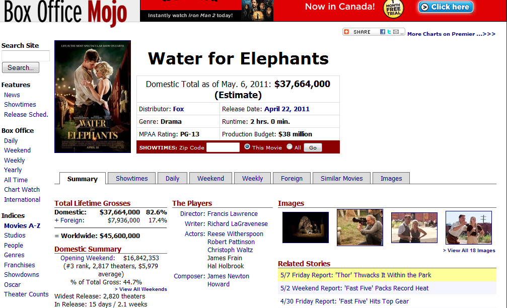 According to Box Office Mojo, Water for Elephants has no reached 45.6M worldwide! Have you see Water for Elephants yet? Keep the momentum going guys! 😉