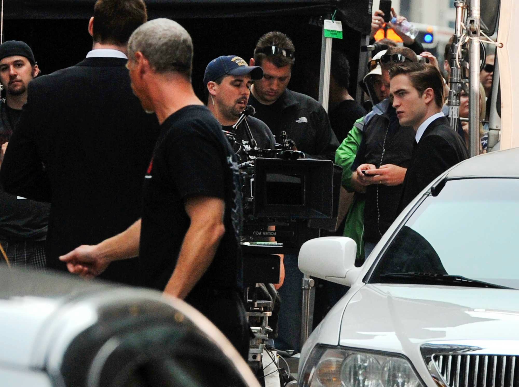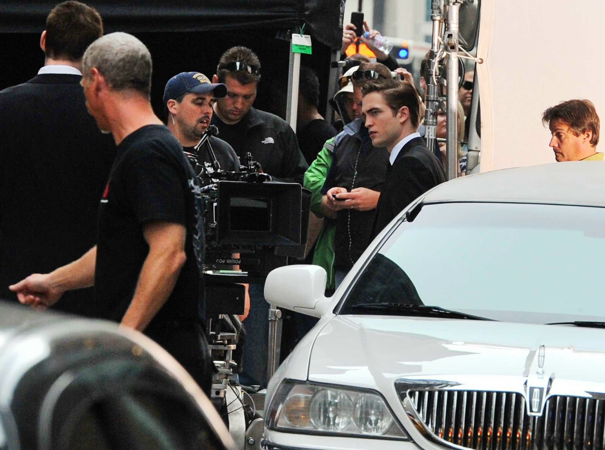 Here are some new pics of Robert Pattinson on the set of Cosmopolis today.