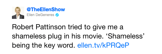 Ellen DeGeneres tweets video of Robert Pattinson 3 comments