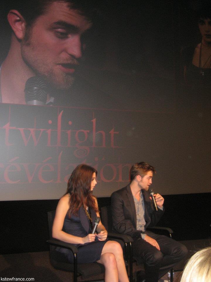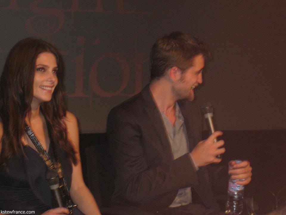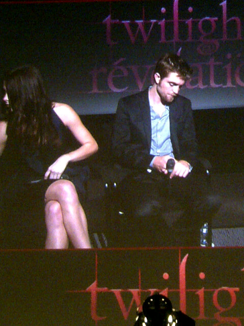During the fan event, a girl ask Rob to sing and i was so embarrassed he didn’t do it. Another girl give him a gift, it supposed to be a hat… Ashley answered first usually to the questions (courtesy) and Rob didn’t know what to answer because Ashley already said it… he was so cute. He tryed to translate in his head a question of a french fan but he had the wrong translation. The other questions was classic.