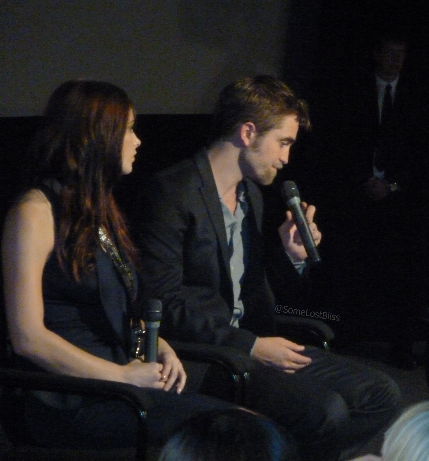 After a few minutes, Rob and Ashley came into the room. The translator asked questions of Facebook fans (I confess that I was not super focused on those here) and people in the room asked questions.