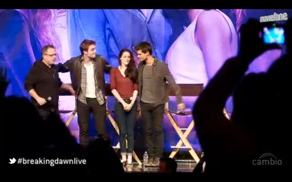 Screencaps of Robert Pattinson, Kristen Stewart, Taylor Lautner and Bill Condon at the Breaking Dawn Twilight Convention » Schermafbeelding 2011-11-06 om 00.33.46   Leave a comment