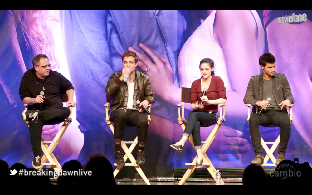 Screencaps of Robert Pattinson, Kristen Stewart, Taylor Lautner and Bill Condon at the Breaking Dawn Twilight Convention » Schermafbeelding 2011-11-06 om 01.03.08   Leave a comment