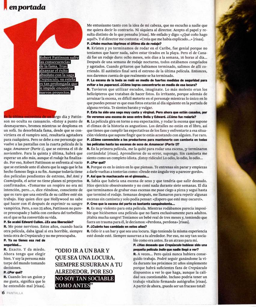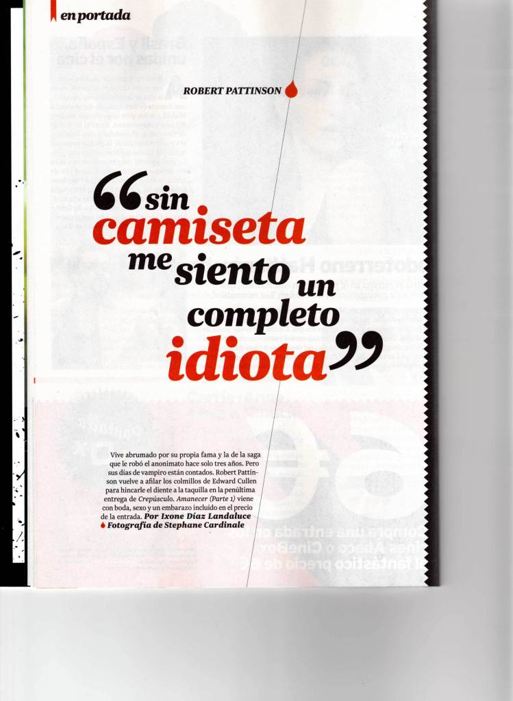 Tagged with 2011, Breaking Dawn, Edward Cullen, Interview, Interviews, Magazine, Magazine scans, Pantella, Robert Pattinson, Spain, Twilight