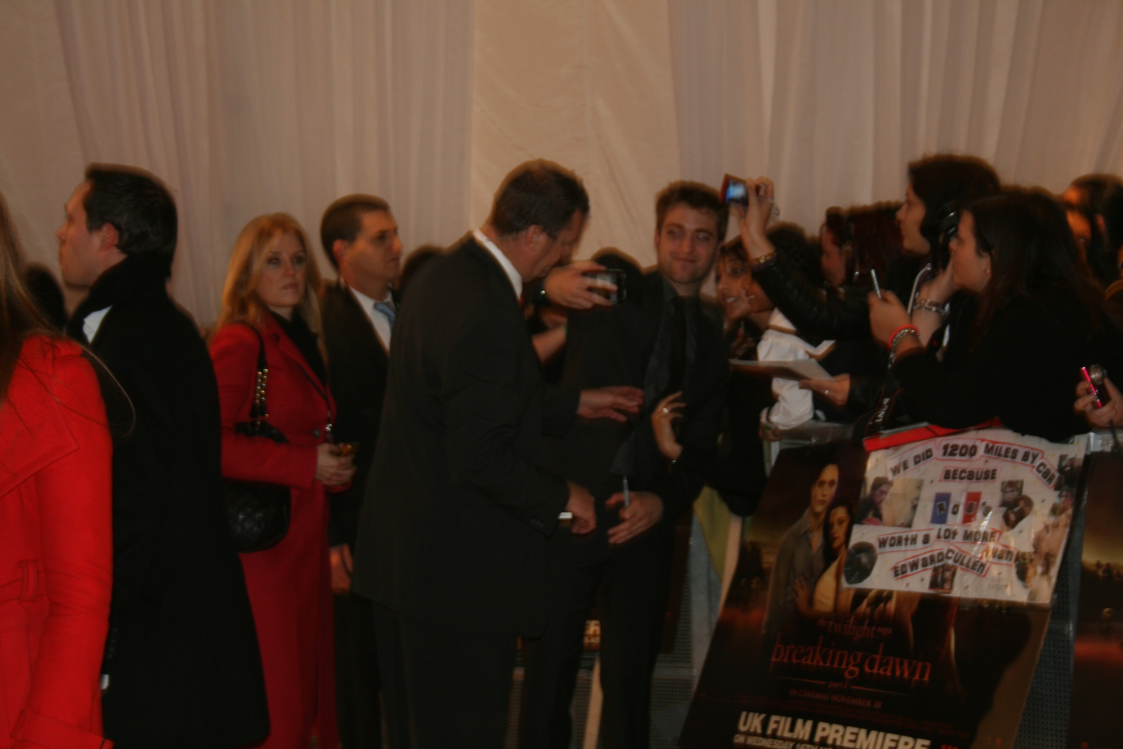 Here are fan pics of Robert Pattinson, Kristen Stewart and Taylor Lautner at the Breaking Dawn Premiere in LONDON