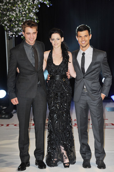 LONDON, ENGLAND – NOVEMBER 16: Actors (L-R) Robert Pattinson, Kristen Stewart and Taylor Lautner attend ‘The Twilight Saga: Breaking Dawn Part 1’ UK Premiere, at Westfield Stratford City on November 16, 2011 in London, England. (Photo by Jon Furniss/WireImage) *** Local Caption *** Robert Pattinson;Kristen Stewart;Taylor Lautner;