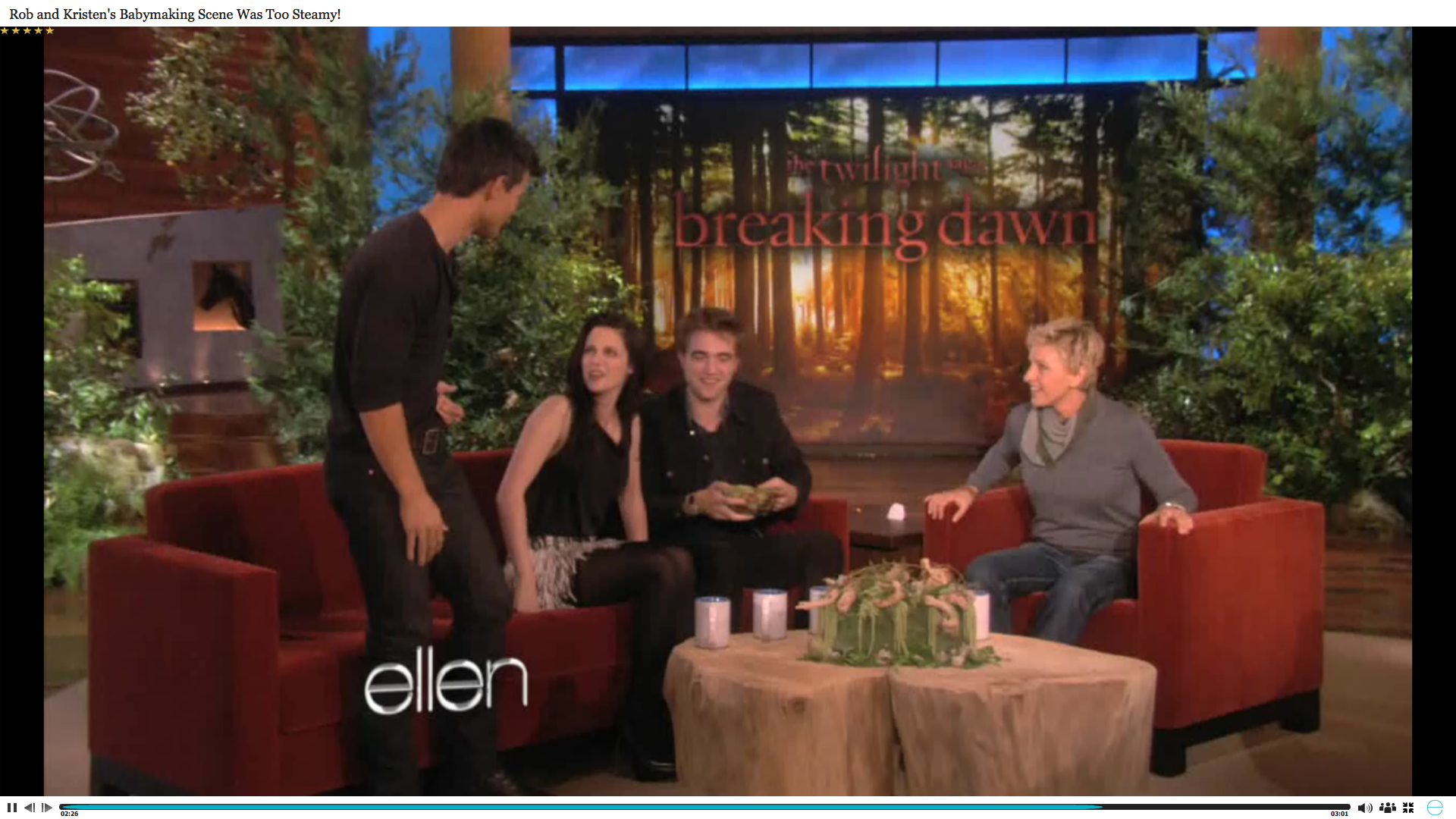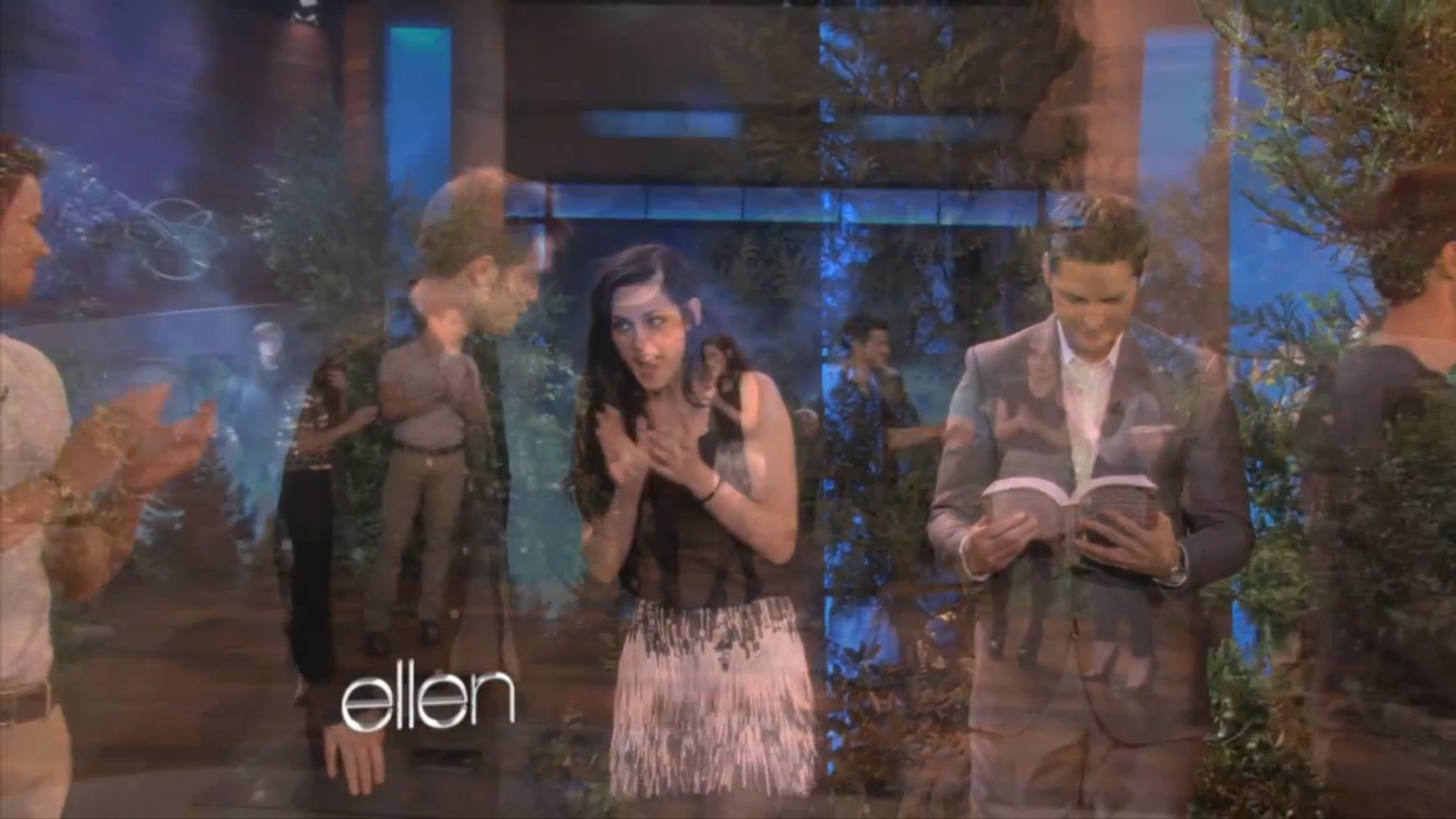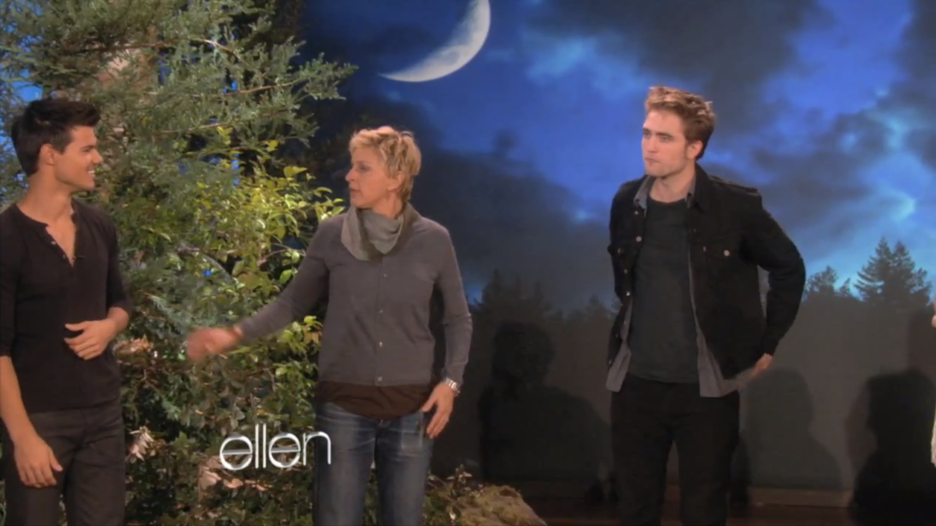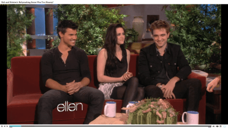 Screencaps of Rob, Kristen, Taylor and the Breaking Dawn cast on Ellen. You can watch the Videos HERE