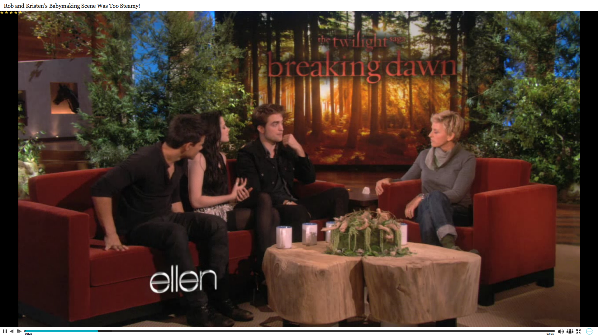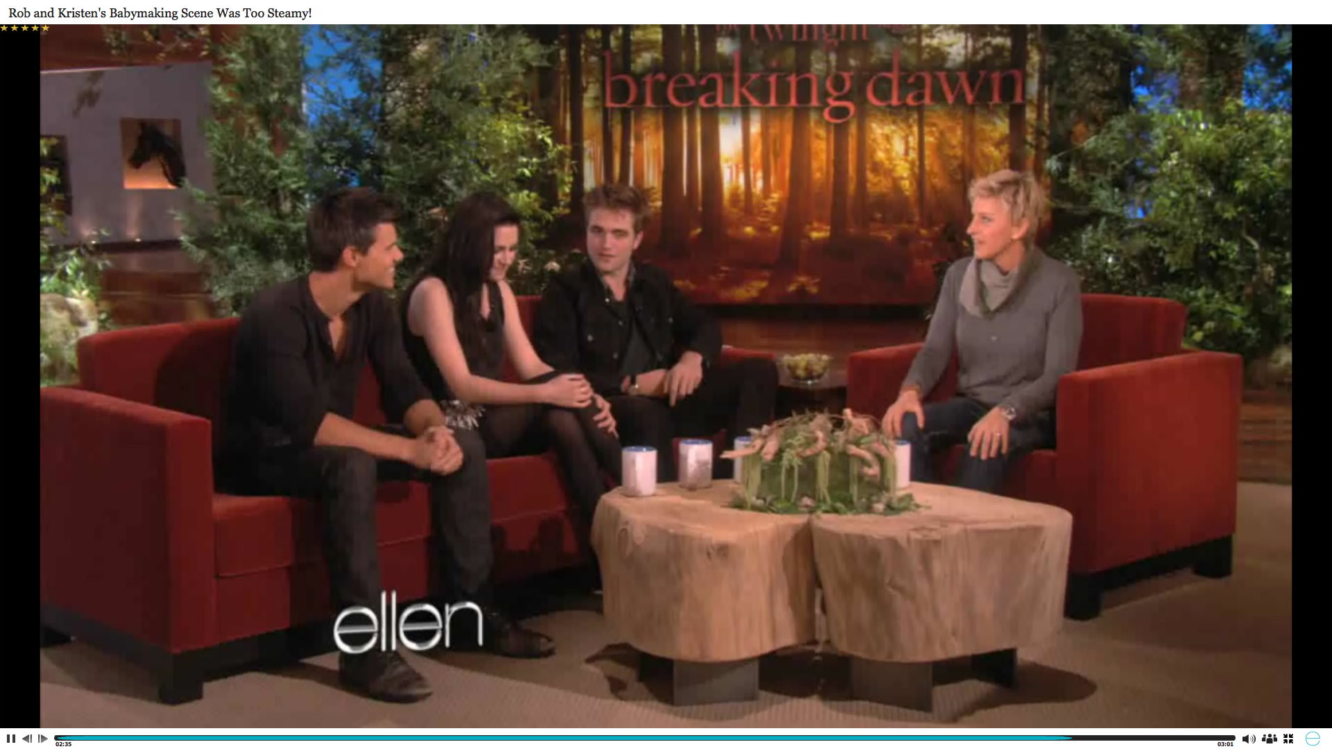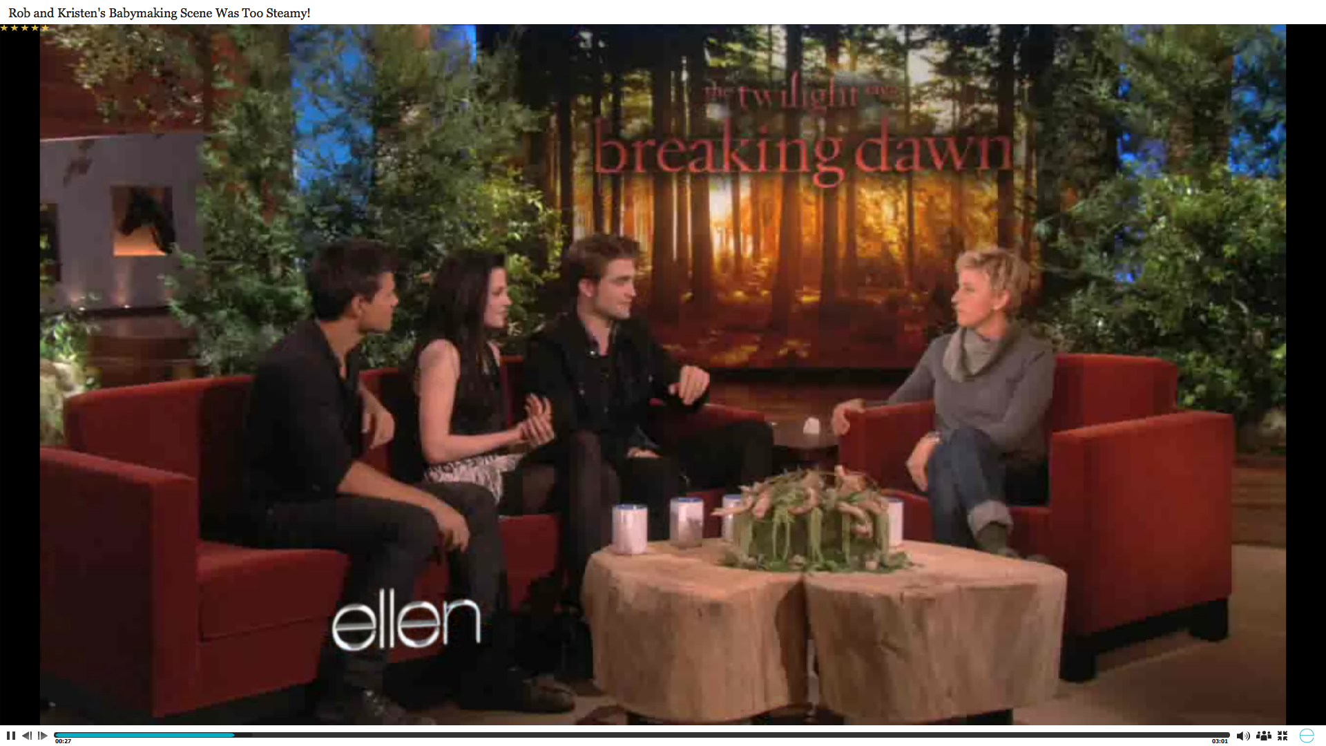 Screencaps of Rob, Kristen, Taylor and the Breaking Dawn cast on Ellen. You can watch the Videos HERE