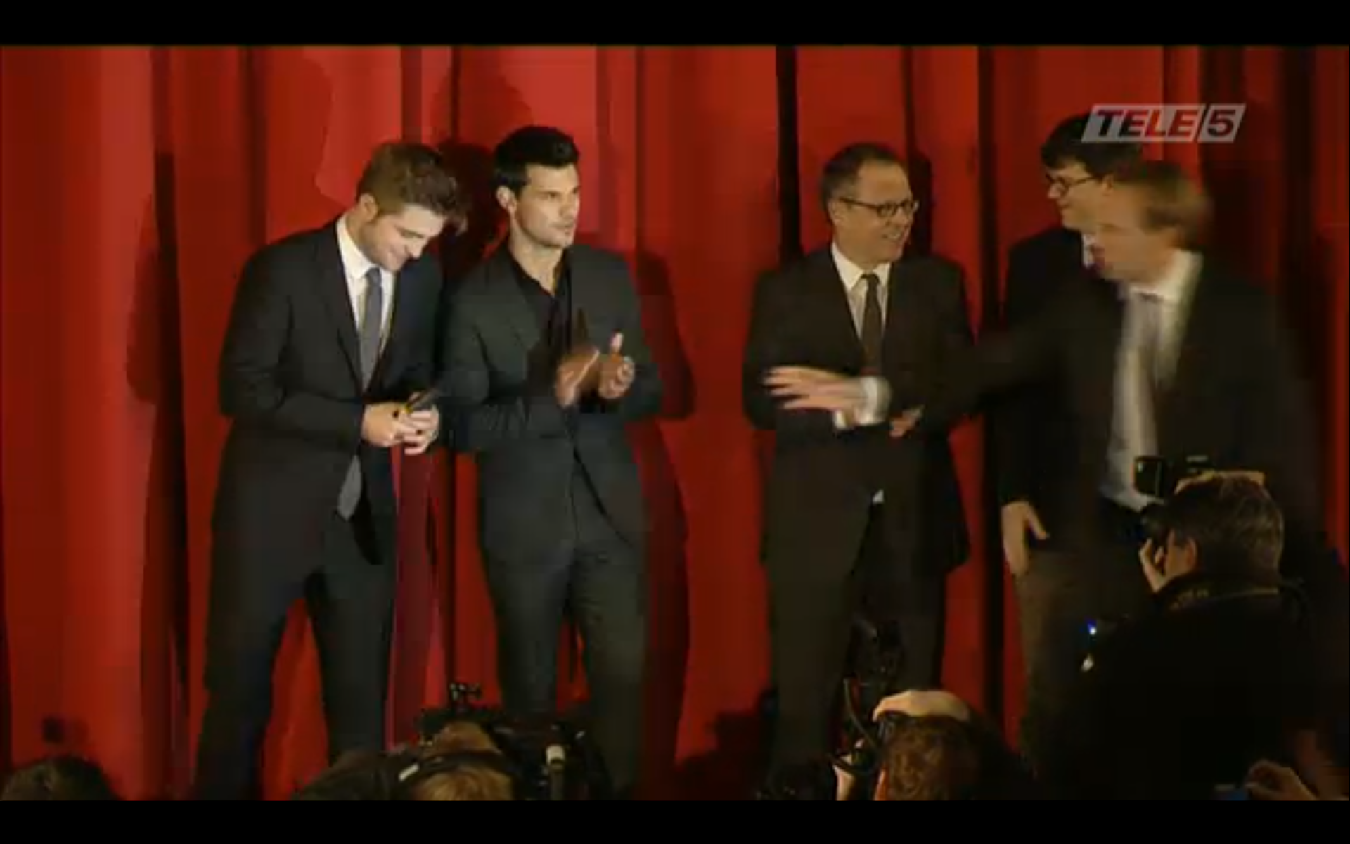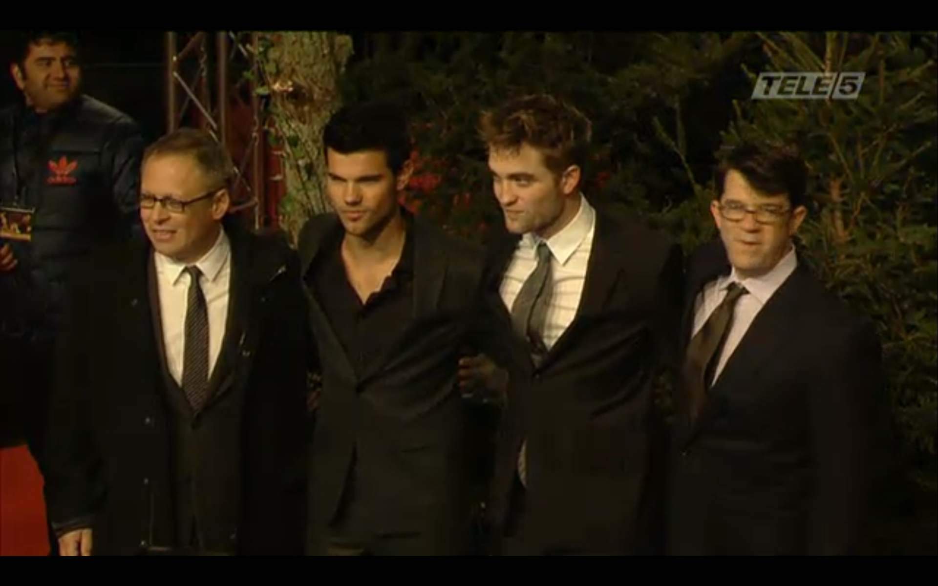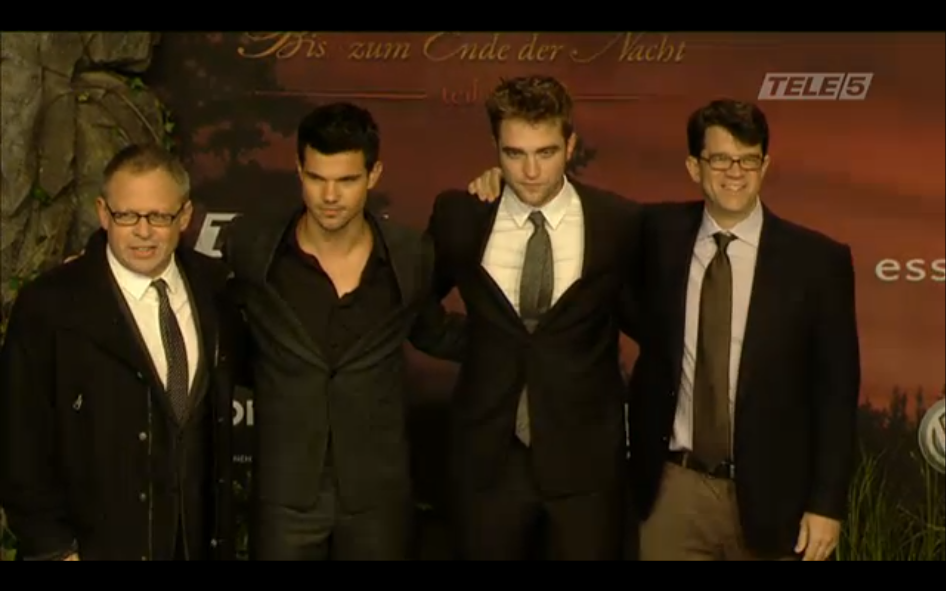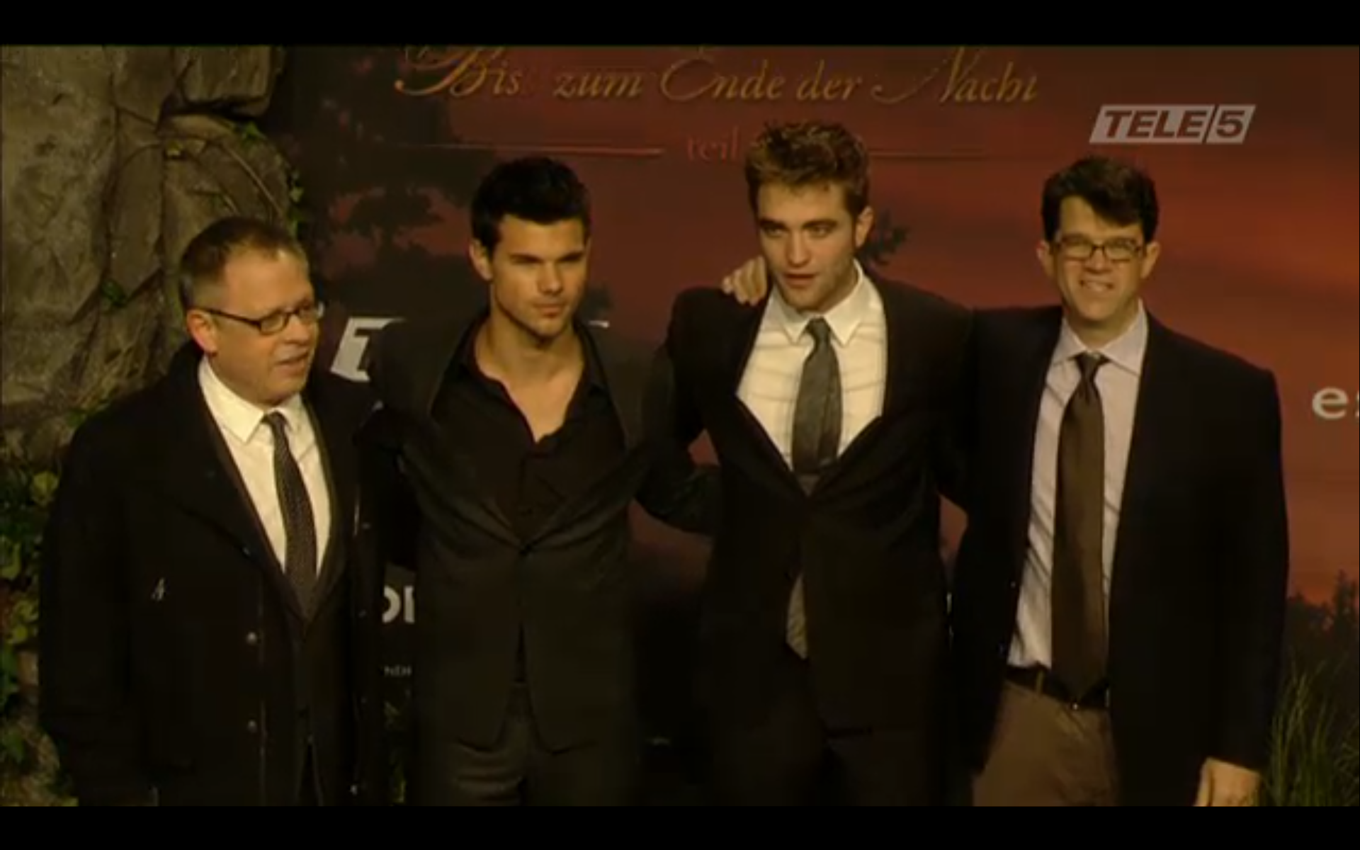 Screencaps from the live stream video of Robert Pattinson, Taylor Lautner & Bill Condon at the Berlin Premiere of Breaking Dawn.