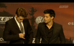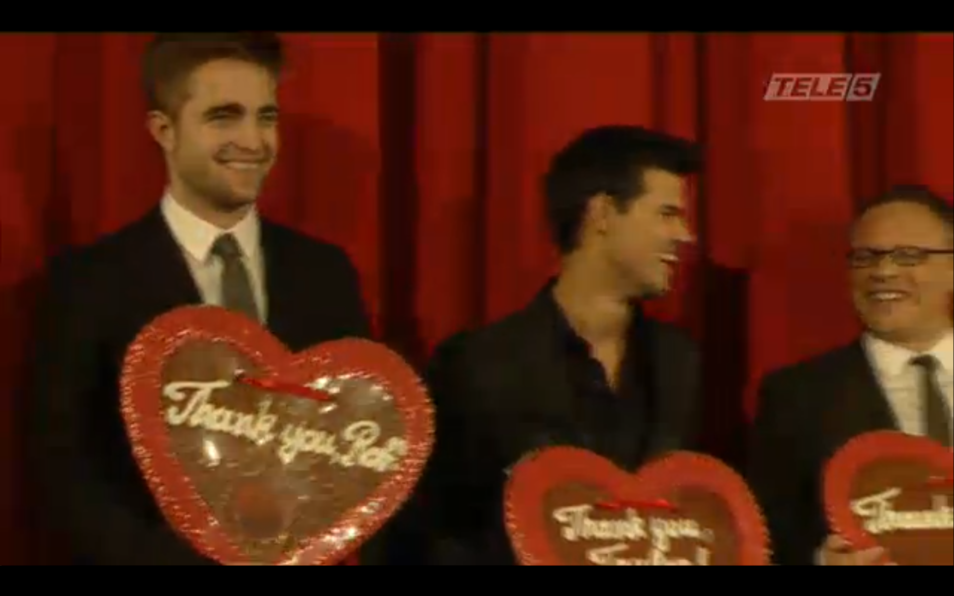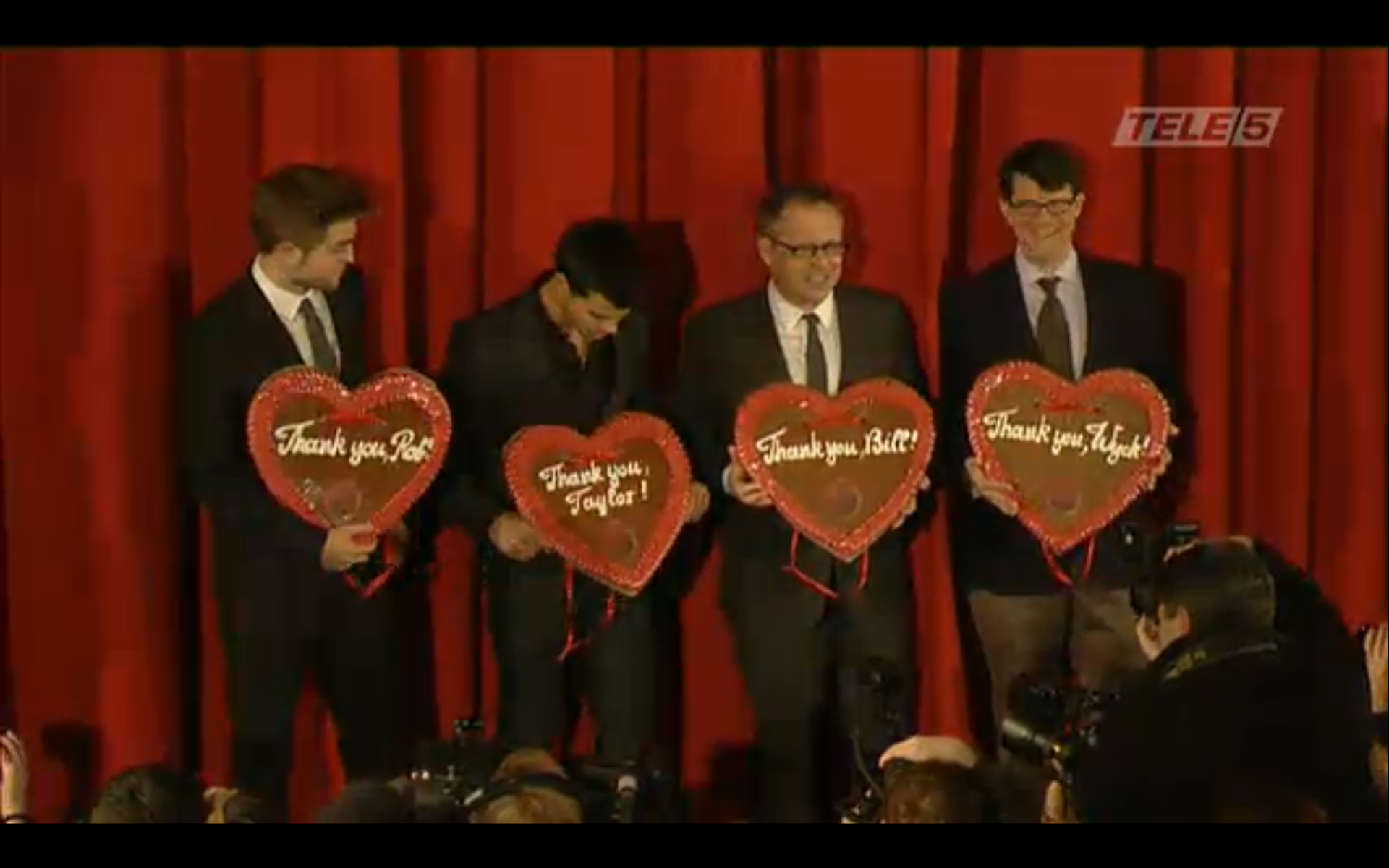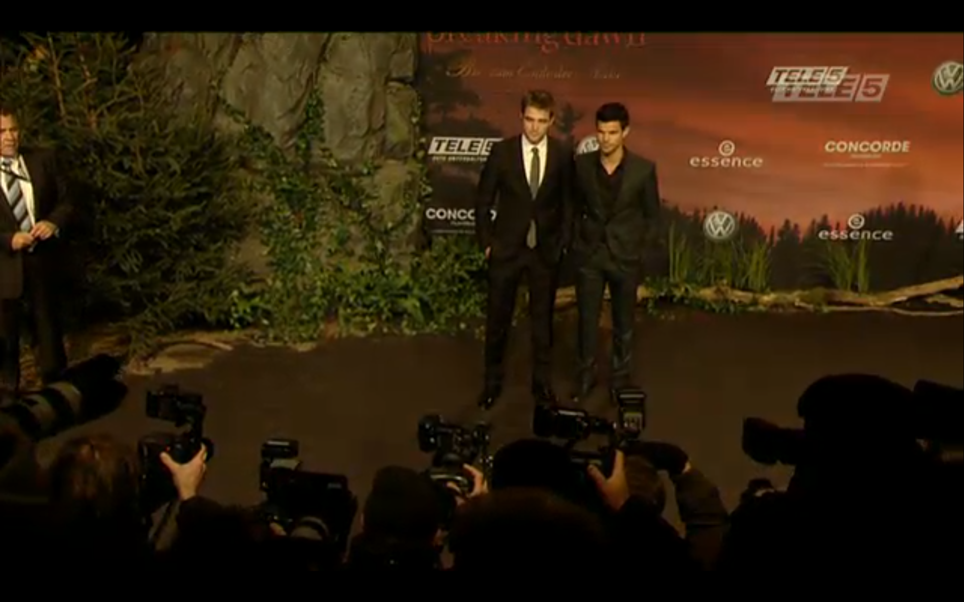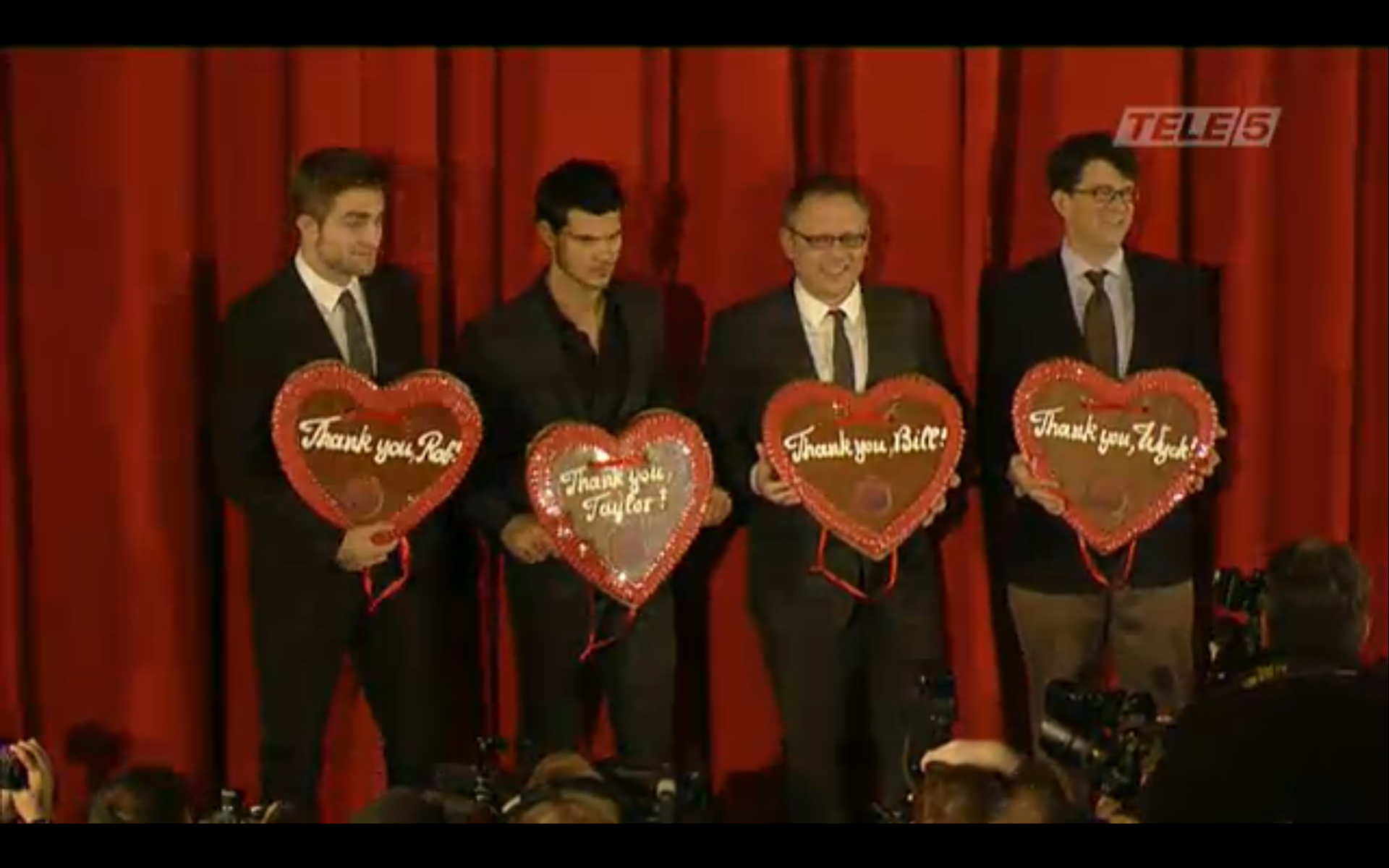 Screencaps from the live stream video of Robert Pattinson, Taylor Lautner & Bill Condon at the Berlin Premiere of Breaking Dawn.