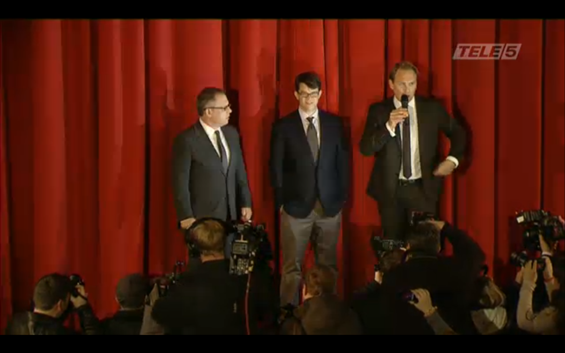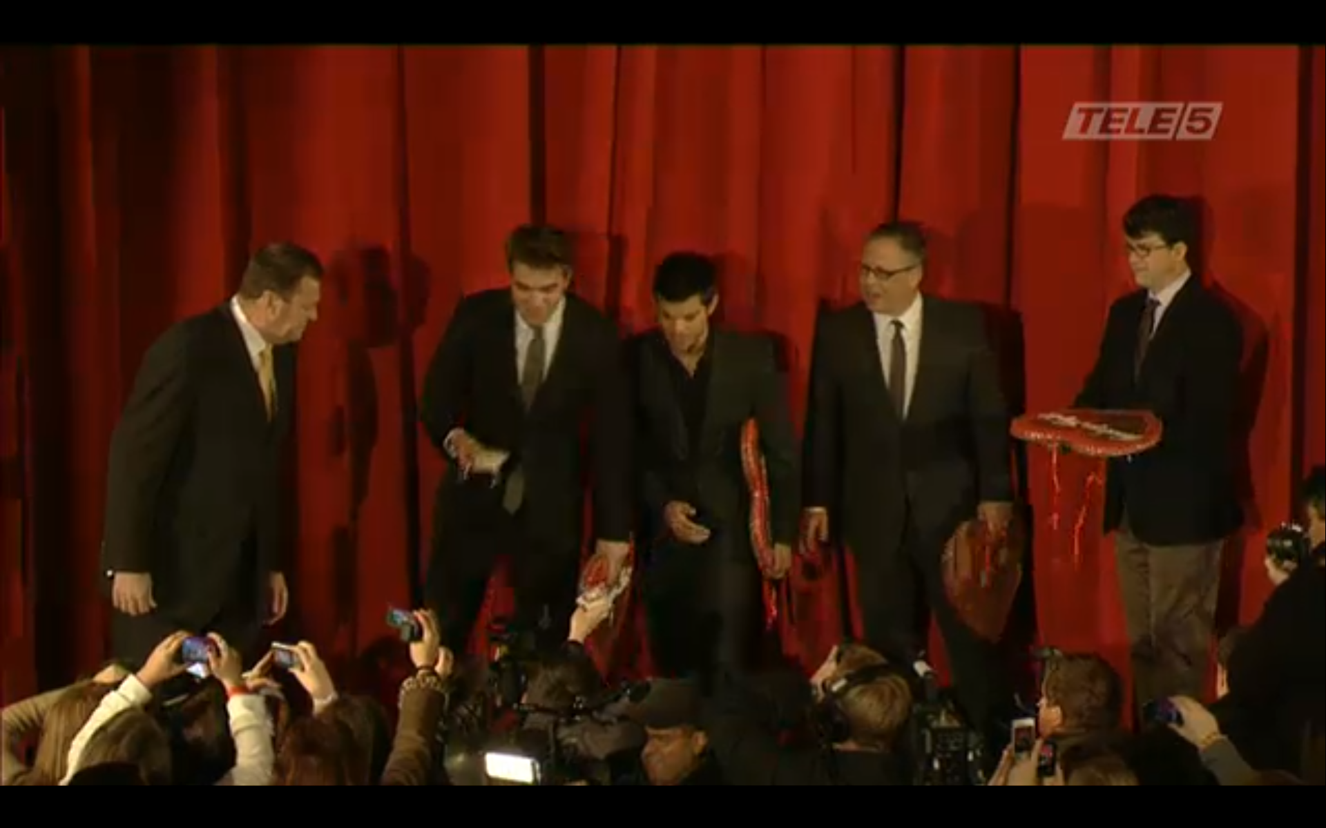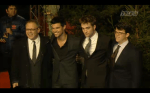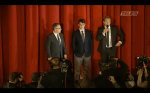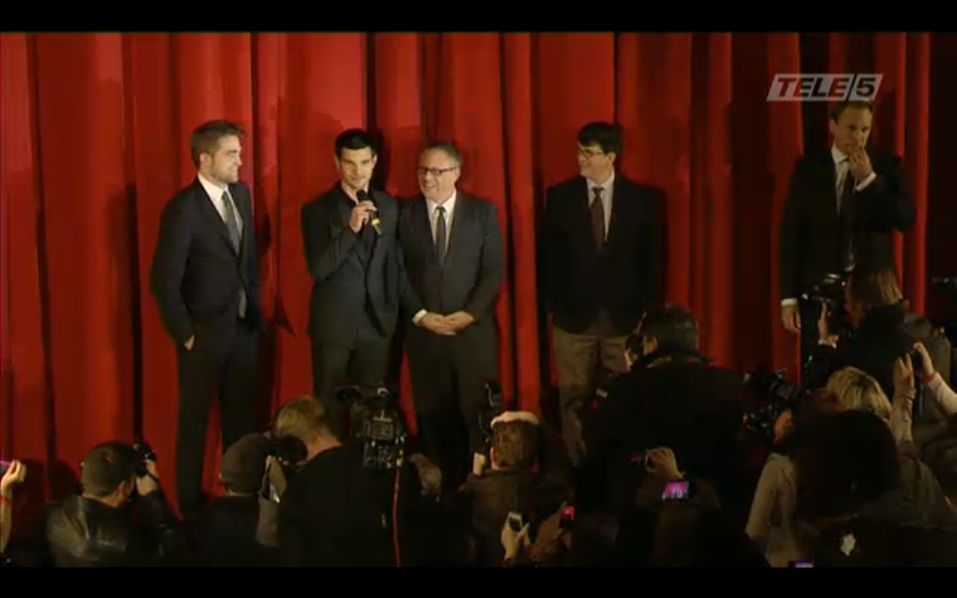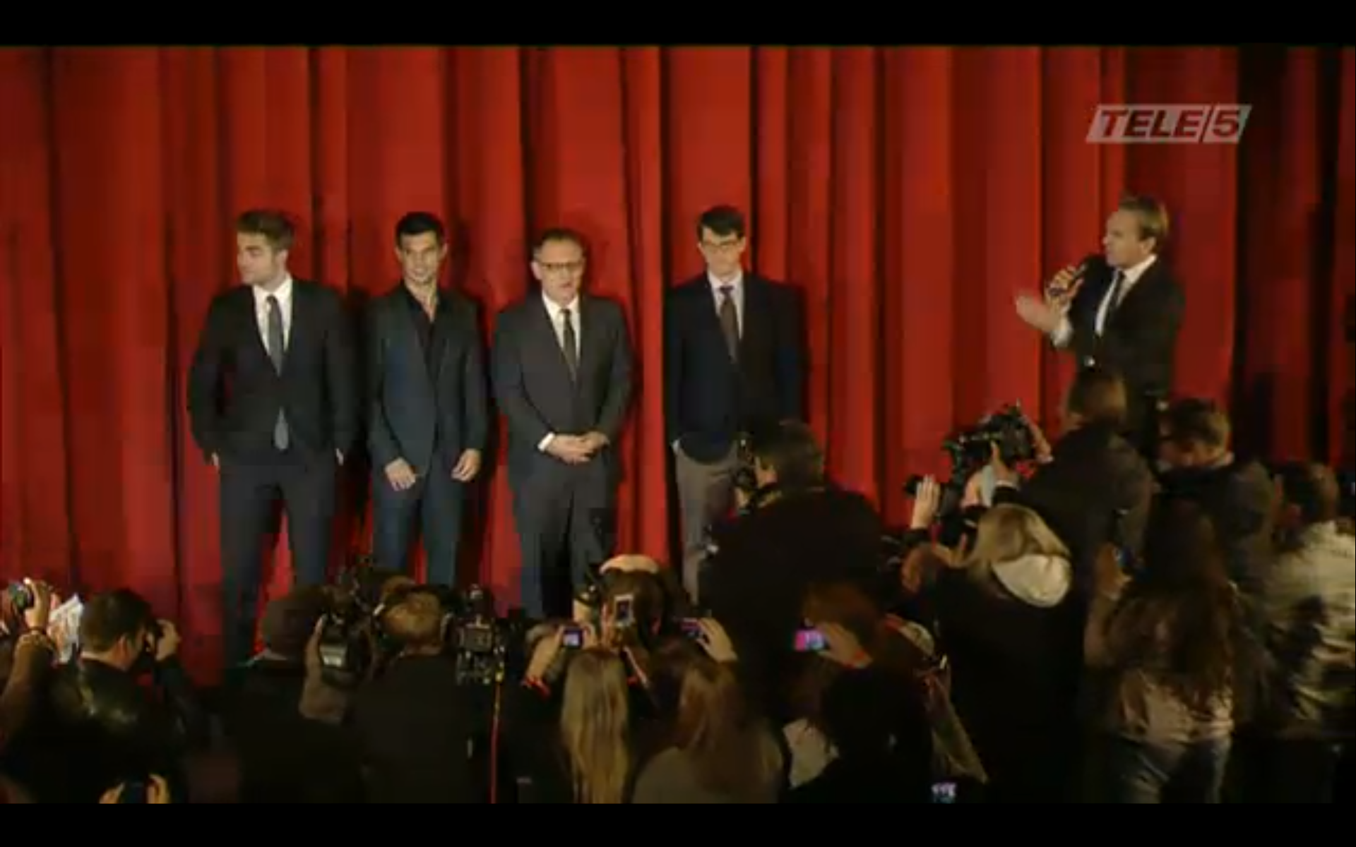 Screencaps from the live stream video of Robert Pattinson, Taylor Lautner & Bill Condon at the Berlin Premiere of Breaking Dawn.