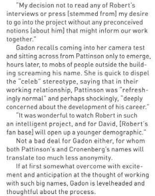 Sarah Gadon talks to Pulp Magazine about Cosmopolis and mentions Rob