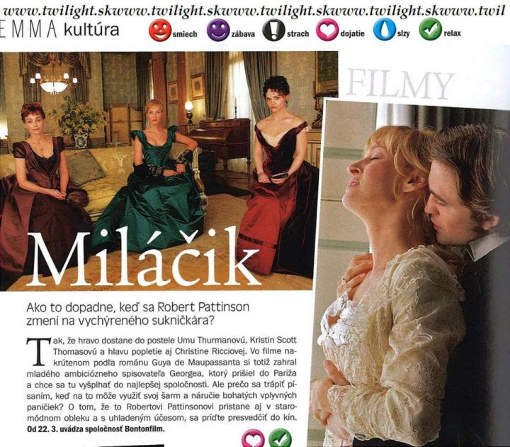 “Based on the 1885 French novel by Guy de Maupassant, it stars the Twilight pin-up Robert Pattinson as Georges Duroy, an ambitious, amoral former soldier and social climber who ruthlessly seduces every woman who wanders into his life. Ricci plays Clotilde de Marelle, who becomes his mistress, while his other creamy conquests include Uma Thurman, Kristin Scott Thomas and Holliday Grainger.