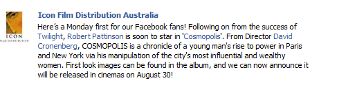Pingback: Cosmópolis: Informações sobre distribuição e data de estréia na Austrália : Meninas Vampiras