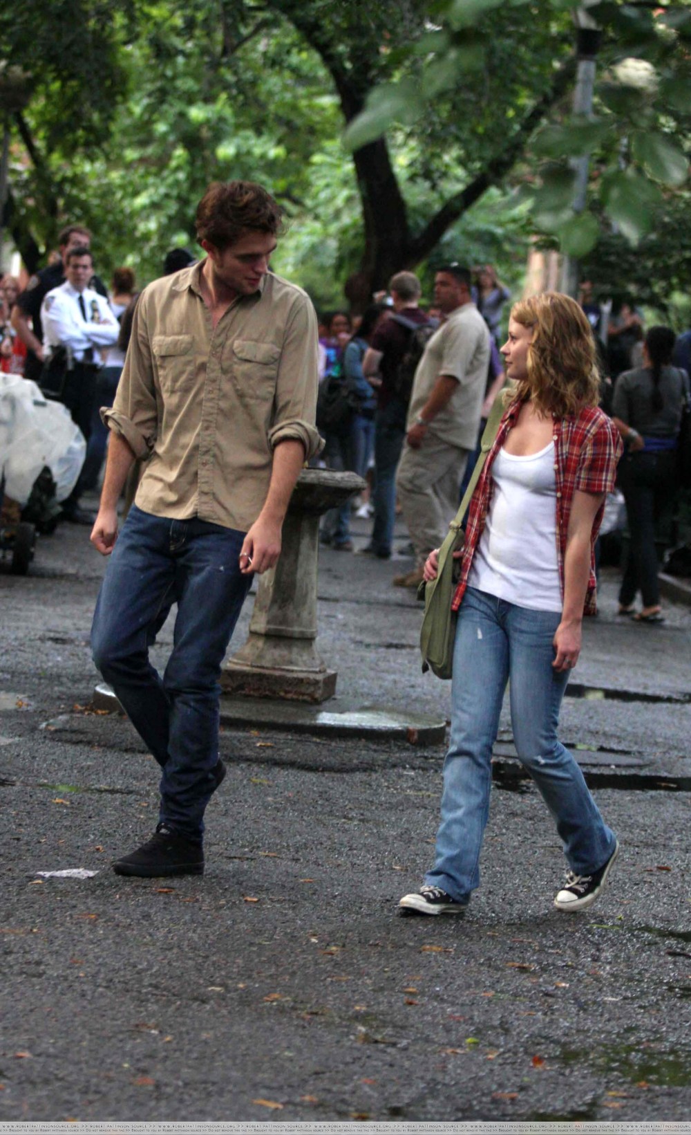 ROBERT PATTINSON EMILIE DE RAVIN.on movie set ”Remember Me”” at Washington.Square Park NY 7-2-09.Photos by John Barrett Globe Photos,INC©2009…K59597JBB.