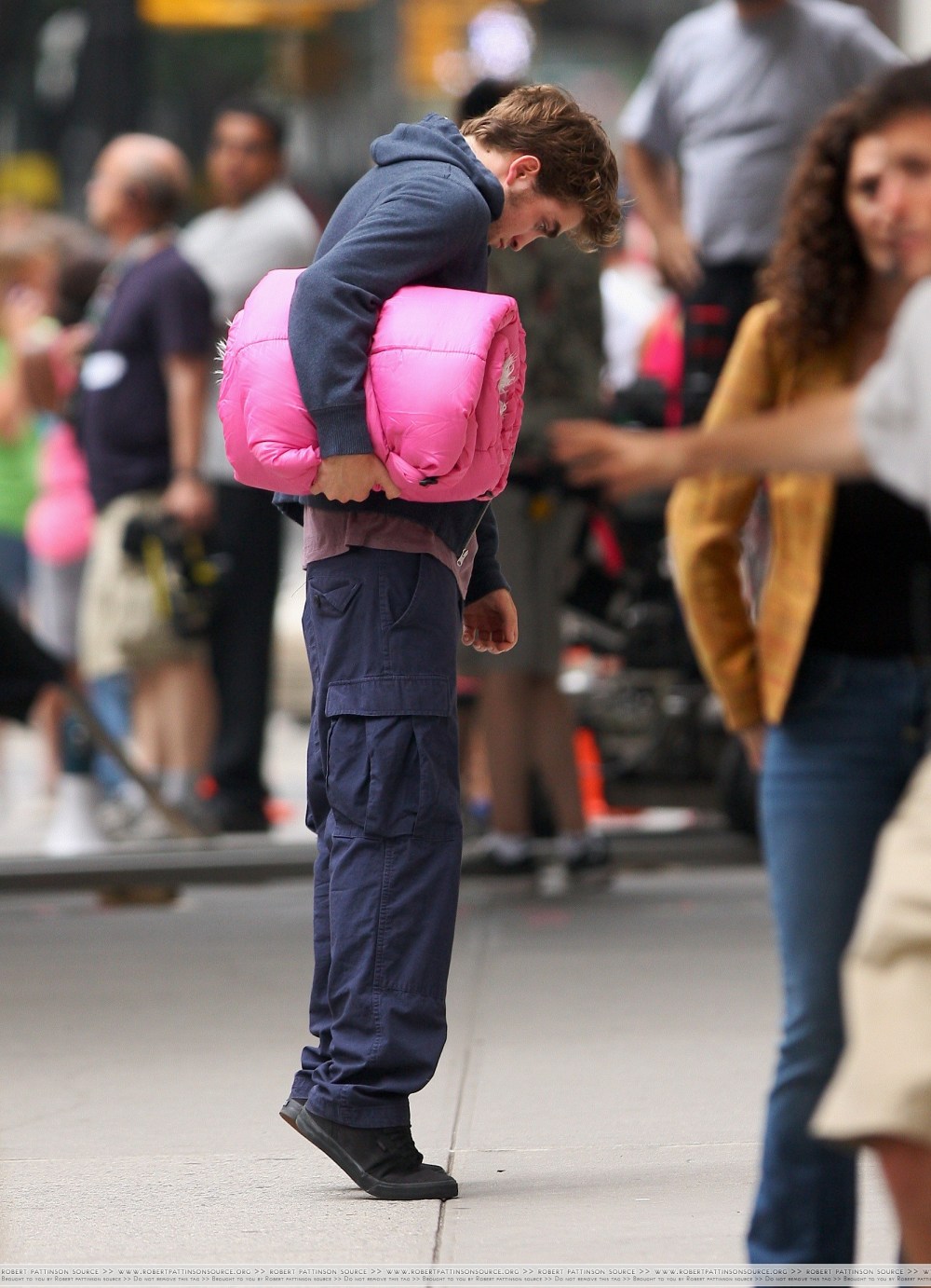 Robert Pattinson seen on the set of ” Remember Me ” filming in New York city, USA.