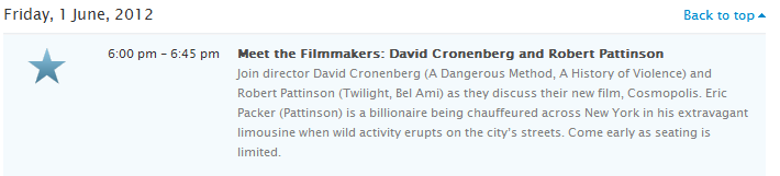 This friday sees Robert Pattinson, David Cronenberg, Jon Hamm and Jennifer Westfeldt discuss their latest movies. It’s totally free, but seats are limited, so make sure you get there early.