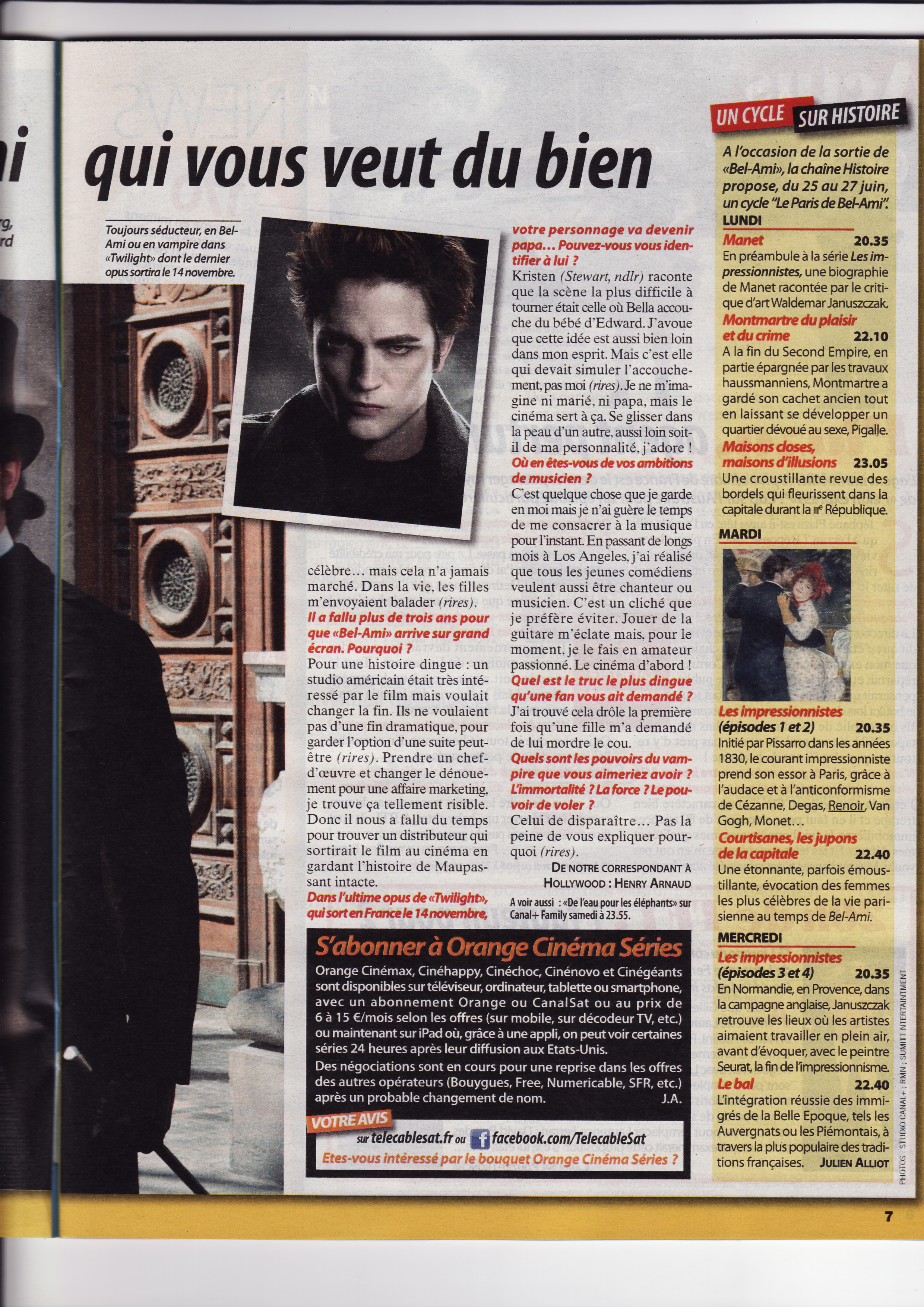 Here are some scans of a new Robert Pattinson interview with Télé Câble SAT. Translation once we get it.
