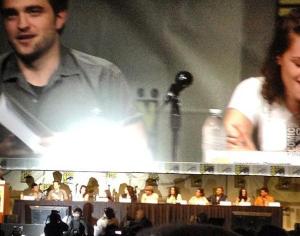 Here are some MQ pics of Robert Pattinson, Kristen Stewart and Taylor Lautner at Comic-Con press conference and panel today.