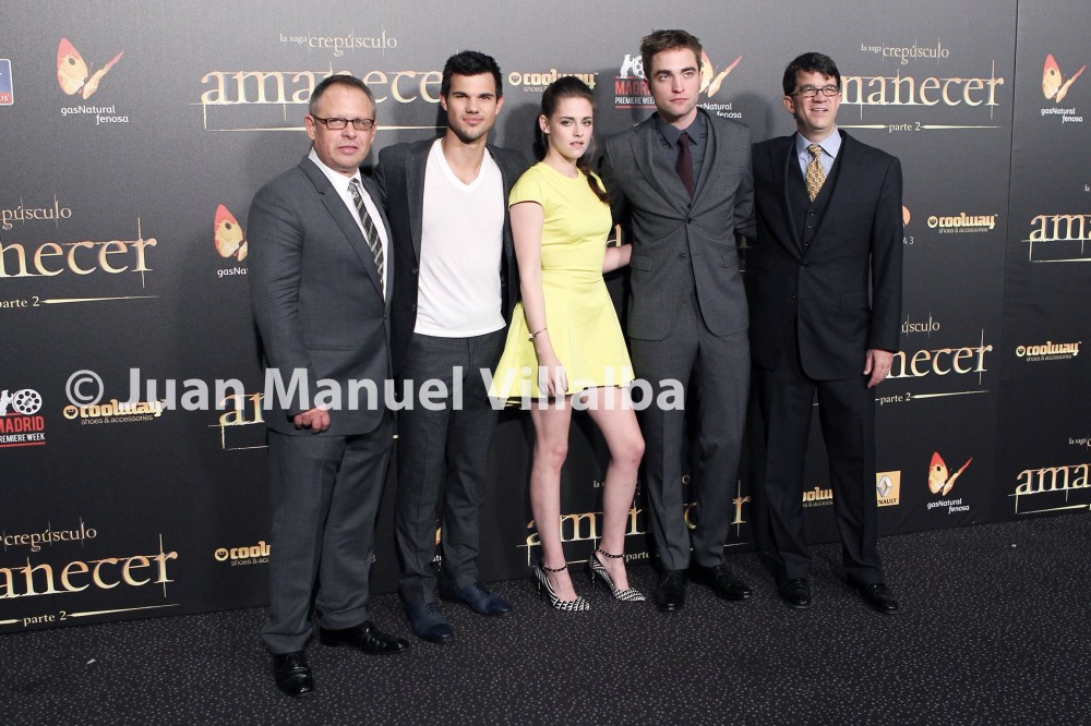 Taylor Lautner, Kristen Stewart, Robert Pattinson, Bill Condon, Wyck Godfrey asisten al photocall de la premiere “La Saga Crepusculo Amanecer Parte 2” en Madrid. **** Taylor Lautner, Kristen Stewart, Robert Pattinson, Bill Condon, Wyck Godfrey attend “The Twilight Saga: Breaking dawn Part 2” Premiere in Madrid.