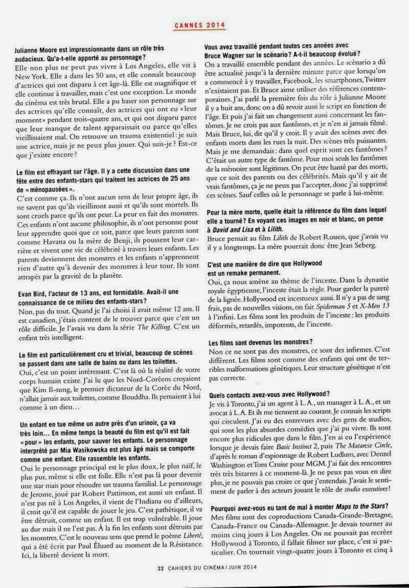 ‘Maps to the Stars’ in Cahiers du Cinéma magazine: NEW BTS Still and David Cronenberg Interview » Itw David Cronenberg Cahiers Du Cinéma Scan 3   Leave a comment