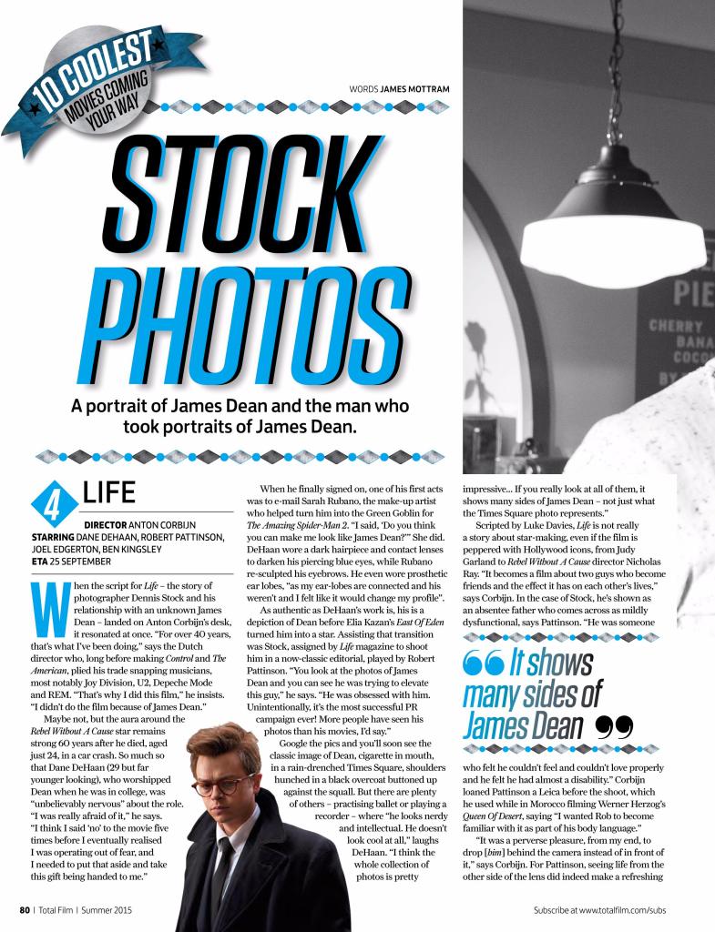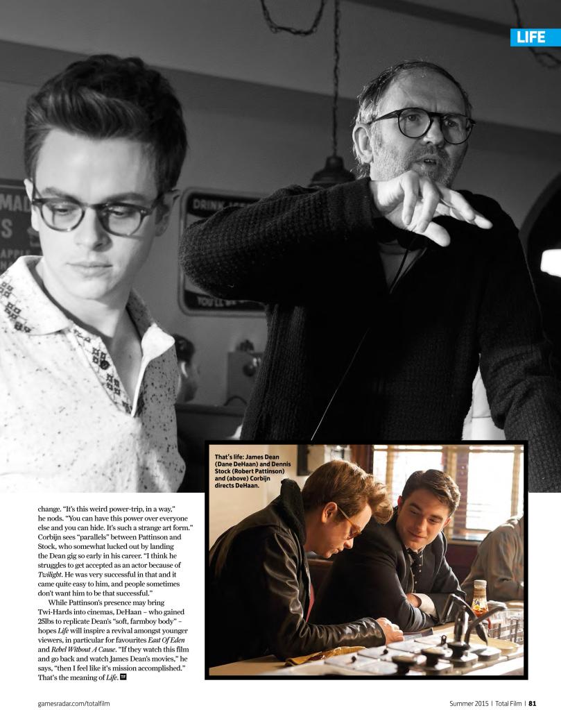 Here are scans of LIFE preview in Total Film Magazine with quotes from Robert Pattinson, Dane DeHaan and Anton Corbijn